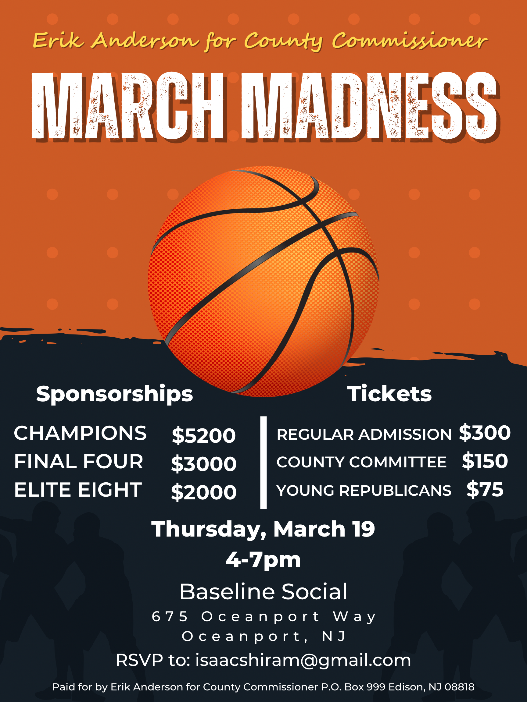 Erik Anderson is currently serving his first, three-year term, which expires on 12/31/26, on the Monmouth County Board of County Commissioners. Commissioner Anderson is the liaison to the Board of Elections, County Counsel, Consumer Affairs, Division of Planning, Historical Commission, Library, Rutgers Extension Services, Superintendent of Elections, and the Superintendent of Schools.